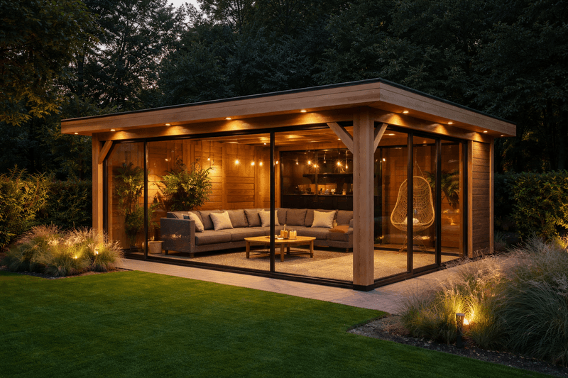 De prijs van een douglas overkapping hangt af van de afmetingen, afwerking en extra opties zoals glazen schuifdeuren of een sedumdak.